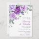 Este convite de casamento rústico e elegante apresenta flores violeta de cor aquosa e folhas de eucalipto. O texto combina o script manuscrito e as fontes serif para uma aparência na moda e moderna. Isto é perfeito para um casamento de primavera ou verão.