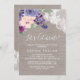 Este cartão de convite de flores roxas e renda vamos celebrar é perfeito para um evento country. O design rústico chique apresenta uma bela arranjo de flores roxas ameixa, lilás e rosa velho com renda floral branca em um fundo de linho elegante. Este convite é perfeito para uma festa de noivado, despedida de solteira ou qualquer evento ou festa.