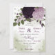 Romântico belo convite de casamento botânico com flores roxas escuras berinjela e roxas claras e folhas verdes