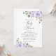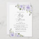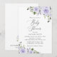 Convide amigos e família de estilo e dê o tom para seu dia especial com este charmoso convite para chás de fraldas. Design apresenta flores de aquarela roxas e verde sobre fundo branco.
