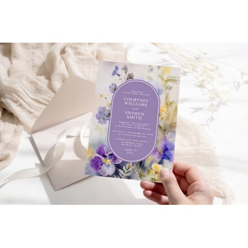 Convite Flores Roxas Rústicas Bebê em Chá de Sangue