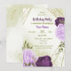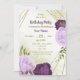 Belo convite de aniversário com flores lilás e beringelas roxas e folhas verdes Os detalhes da brilha do ouro são simulados. PARA MAIS PRODUTOS CORRESPONDENTES, clique na coleção acima ou entre em contato comigo