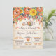 Convite rústico do chá de fraldas que caracteriza flores alaranjadas e amarelas elegantes e o bule desenhado mão & o teacup do vintage.