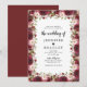 Convites de casamento Elegant bloom com um fundo branco simples que pode ser alterado para qualquer cor, uma borda de flores aquareladas de vermelho marsala, burgundy e rosa beijo, e um modelo de casamento informal.