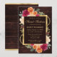 Este convite elegante e rústico de Sweet Sixteen para o outono apresenta um rico fundo de madeira escura emoldurado com vibrantes flores de outono em tons quentes de laranja queimada, vermelho profundo, pêssego e creme. Uma moldura dourada refinada destaca os detalhes do seu evento, adicionando um toque de sofisticação à paleta sazonal aconchegante. Perfeito para aniversários de outono, locais de celeiro, celebrações ao ar livre ou qualquer pessoa que ame estética rústica e quente com um acabamento polido. Personalize o nome, data e local para criar um belo souvenir personalizado.