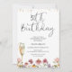 Flores Selvagens aniversário de 30 anos de Vidro de Champagne Convite para flores selvagens, convite para aniversário de 30 anos com um adorável arranjo multicolorido de flor selvagem e vidro de champanhe de cor alta e dourada. Este convite moderno para aniversário de 30 anos de flor silvestre também apresenta um belo cabeçalho de fonte de caligrafia moderna e alguns pontos falsos de brilho dourado.