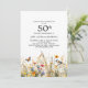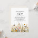 Bonito convite para o 50º aniversário de casamento, estilo country, com flores silvestres coloridas, pássaros e borboletas.