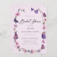 Um elegante chá de panela de fuselagem de vassoura com flores silvestres (cosmos e outras flores e gramíneas comuns) em aquarela, borboletas roxas e cor-de-rosa com borboletas douradas (são efeitos digitais, não folha real ou brilho!) e caligrafia moderna, com uma flor silvestre rosa nas costas. Elegante e chic, é o convite perfeito para um almoço de noiva, brunch ou festa no jardim do quintal, ou para qualquer noiva que ame flores silvestres, borboletas e designs rústicas, de campo com um toque de amor romântico.