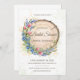 Watercolor Wildflower & Blueberry Rustic Chá de panela Card. O estilo romântico com mirtilos, flores lavandas, trevo e eucalipto é perfeito para um casamento de verão rústico. A base da composição é uma coroa de flores silvestres e um círculo de madeira. O sabre de aquarelas complementa a composição das flores e bagas e lhe dá um encanto especial.