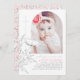 Estas cinzas cor-de-rosa bonitinhas e batismo branco convidam os convidados a sentirem calor no verão. A aparência das flores silvestres desenhadas à mão é muito elegante, mas caprichosa e natural. Um layout simples e limpo foi projetado para focar toda a atenção na foto da menina.