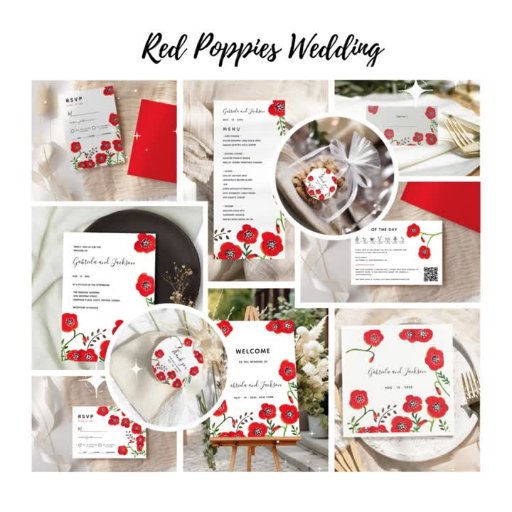 Red poppies with greenery wedding suiteCriado por Caroline Bonne Müller