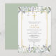 Folhas bonitas de sálvia e lilás caem sobre uma moldura dourada elegante que envolve os detalhes do seu batismo ou batizado em texto clássico e elegante. Concebido por Thisisnotme©