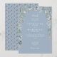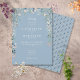 Lindas flores silvestres de folhagem floral emolduram os detalhes da sua celebração de casamento especial, definidos em tipografia branca elegante em um fundo azul desbotado chic. Projetado por Thisisnotme©