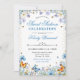 Este convite elegante para Sweet 16 apresenta um delicado arranjo de flores silvestres azuis e brancas — incluindo não-me-esqueças em aquarela suave e borboletas — emoldurando lindamente os detalhes do seu evento. As bordas de confete glitter dourado adicionam um toque de brilho, dando ao design um acabamento festivo e refinado. A paleta azul fresca e os suaves acentos florais tornam-no perfeito para aniversários de primavera e verão, festas de jardim, celebrações ao ar livre ou para qualquer pessoa que adore papelaria fresca e inspirada na natureza. Personalize o nome, data e local para criar um item de recordação que seus convidados irão valorizar.