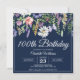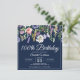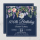 Convite de aniversário de 100 anos azul marinho elegante e flores silvestres que você pode personalizar com os detalhes da sua festa.