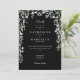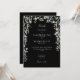 Um convite de casamento floral aquarela de flores silvestres elegante que enquadra os detalhes da celebração do seu casamento definidos em tipografia branca elegante em um fundo preto elegante. Projetado por Thisisnotme©