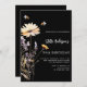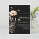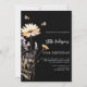 Um fundo preto. Decorado com abelhas e flores silvestres pintadas em violeta e rosa. Personalize e adicione um nome e detalhes da festa. Texto branco.