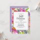 Celebre 50 anos juntos com este convite de aniversário de 25 anos de casamento com flores silvestres em aquarela roxa e rosa. Entre em contato para obter ajuda com suas personalizações ou para solicitar produtos Zazzle adicionais correspondentes ou coordenados para o(s) seu(s) evento(s)