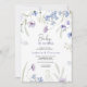 Este convite moderno de bebê em flor apresenta flores silvestres em aquarela azul claro e violeta, folhas verdes. Aproveite!