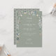 Belas flores silvestres de folhagem floral enquadram os detalhes da sua celebração de casamento especial, definidos em tipografia branca elegante em um fundo verde sal chic. Projetado por Thisisnotme©