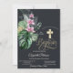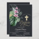 Convite Flores Tropicais Douradas Elegantes Batismo Escuro