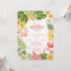Flores tropicais com folhas de palma e flamingos. Este convite é facilmente personalizado para o seu evento simplesmente adicionando os seus detalhes.