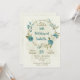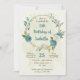 Convites de festa de aniversário românticos e bonitos com flores azuis e brancas e algumas folhas verdes bonitas.