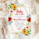 Este charmoso design apresenta um arranjo vibrante de flores em aquarela em tons de vermelho, amarelo e azul, emoldurando elegantemente uma borda geométrica moderna em dourado. Acentuada com folhagens suaves e detalhes botânicos delicados, a composição cria uma estética fresca, alegre e inspiradora. A combinação de flores brilhantes e linhas douradas elegantes adiciona um equilíbrio perfeito entre charme lúdico e estilo refinado. Ideal para um chá de bebê, este design captura lindamente a emoção e o calor de celebrar uma nova chegada, tornando-o uma escolha encantadora e sofisticada para convidar os convidados.