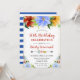 Este convite de 50º aniversário elegante apresenta uma vibrante obra de arte floral no topo e na parte inferior, combinada com sotaques suaves dourados que adicionam um brilho festivo ao fundo branco limpo. Um painel lateral listrado em azul e branco introduz um toque fresco e moderno, enquanto a tipografia central mantém os detalhes do evento claros e refinados. Com suas cores brilhantes, flores inspiradas em jardins e layout comemorativo, este design é perfeito para marcar um aniversário marcante com calor e estilo — ideal para reuniões de primavera, festas ao ar livre ou qualquer celebração elegante de 50 anos.