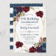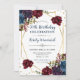 Elegante Boho Watercolor Vermelho e Azul Flores de inverno e design de folhagem com estrutura geométrica dourada