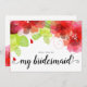 Flores vermelhas etéreas e estilo cursivo de escrita manual caligrafia casamento floral de primavera "Você será minha dama de honra?". Um design bonito que apresenta flores vermelhas e cor-de-rosa com folhas verdes.