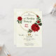flores vermelhas românticas e folhas verdes lindas convites de aniversário douradas