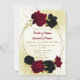 Bonito convite de casamento, com flores negras e vermelhas e folhas de ouro em uma elegante estrutura geométrica de ouro. São simulados os detalhes do brilho dourado. É adequado tanto para os convites para o casamento como para o noivado. PARA MAIS PRODUTOS CORRESPONDENTES, clique na coleção acima ou entre em contato comigo
