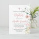 Celebre a alegre ocasião do batismo de sua filha com nossos cartões de convite lindamente projetados, com uma bela cor d'água vermelha e flores verdes. O vibrante trabalho de arte floral adiciona um toque de elegância e frescura, capturando perfeitamente a essência desse evento especial. A simples e sofisticada inscrição melhora o design geral, criando um eterno e um convite para na moda. Cada cartão é meticulosamente elaborado para garantir uma primeira impressão memorável para os seus convidados. Ideal para anunciar esse marco significativo, nossos convites para batismo combinam lindamente beleza e graça artística em um design harmonioso.
