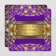 Elegante convite de festa de aniversário de casamento de 50 anos com flores vitorianas douradas e roxas. Adicione seus detalhes na frente e/ou no verso deste convite de aniversário roxo e dourado adicionando simplesmente os detalhes do seu evento, estilo de letra, tamanho e cor da letra e texto.