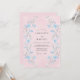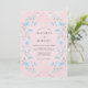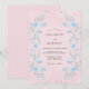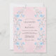 Delicadas pinceladas em azul claro e cinza suave criam artisticamente um florescer floral romântico sobre um fundo rosa suave. Este design evoca um clima caprichoso e etéreo, perfeito para uma ocasião matrimonial terna. A representação artística de flores acrescenta um toque de charme pictórico.
