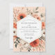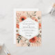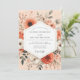 Este design apresenta um arranjo exuberante de flores pintadas em uma paleta romântica. Tons suaves de coral, terracota e pêssego quente se misturam lindamente com anêmonas brancas cremosas e folhagens cinza-esverdeadas suaves. Raminhos e folhas delicados criam uma sensação de profundidade e elegância. O clima geral é artístico, quente e romanticamente atemporal para o seu dia especial.