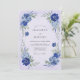 Uma cascata de ricos blooms azuis cobalto e folhagem verde suave cria uma estética romântica e pintada. Este design evoca um sentimento de elegância clássica com um toque de charme artístico. Perfeito para um evento matrimonial sofisticado.