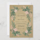 Este design apresenta um arranjo encantador de flores suaves e folhagens exuberantes. A obra de arte evoca uma atmosfera natural e romântica, perfeita para uma ocasião ao ar livre elegante. Pequenos ramos de folhas se entrelaçam com elementos florais sutilmente sombreados.