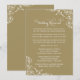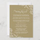 Adicione calor e elegância à noite de ensaios com este convite de jantar de ensaio de casamento dourado. Os floreios de pergaminho branco acentuam os cantos enquanto a caligrafia fluida apresenta um poema rimado encantador que guia os convidados da prática da cerimônia para o jantar. O fundo dourado rico cria um ambiente luxuoso e acolhedor. Todo o texto, cores e layout são totalmente personalizáveis para combinar com sua celebração.