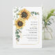 Crie um cartão de convite para o casamento do Sunflower Budget, moderno, com este modelo bonitinho com um belo buquê floral rústico, estrutura de efeito de ouro geométrico, com uma tipografia simples moderna. DICA: Cartões de suíte de casamento iguais, como RSVP, programas de casamento, banners, tapeçarias, etiquetas de presentes, placas e outras pegadas de casamento e guloseimas estão disponíveis na coleção abaixo com esta design.