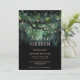 Uma ilustração com uma aquarela esbranquiçada de uma árvore majestosa, com folhagem esmagadora, verde esmeralda e detalhes florais em verde esmeralda em uma arca feminina, brilhante com luzes de fadas e poeira mágica, decora este verão primavera no inverno Sweet 16 convite com um tema de floresta encantado. Um convite elegante e moderno para um conto de fadas do décimo sexto aniversário. Perfeito para raparigas e famílias que adoram o cenário florestal de conto de fadas, o tema da floresta de fadas ou do jardim de fadas e o verde esmeralda.