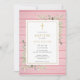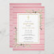 Apresentando delicadas folhas de cor d'água verde sobre um fundo rosado de madeira rústica, e um elegante crucifixo de ouro, este batismo chic ou convite batizante pode ser personalizado com suas informações especiais. Projetado por Thisnotme©