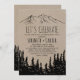 Este convite de celebração de floresta rústica de montanha é perfeito para uma festa de noivado na floresta. O design inspirado na natureza apresenta a silhueta de uma floresta de pinheiros e montanhas em papel kraft falso. Este convite é perfeito para uma festa de noivado, festa de despedida de solteira ou qualquer evento ou festa.