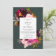 Elementos: outono e inverno florescem num fundo verde de floresta profundo com fontes limpas modernas de sans serif. Cores: verde-floresta, burgundy, blush, rosa, laranja, ouro, mauve, amora, ameixa. Temas: botânico, jardim, outono, inverno, moderno, modesto, rústico, país, escuro, humor. Coleção: Coleção de Aquarelas Florais De Blush Verde Da Floresta Borgonha. Tipo de produto: Convites de casamento