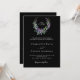 Fundo preto. Uma coroa floral feita de flores lavandas e de eucalipto verde de cor aquosa. Personalize e adicione suas iniciais, nomes e detalhes do monograma. Texto branco. Voltar: adicione o URL do seu site de casamento ao código QR para obter detalhes e/ou RSVP.