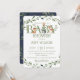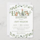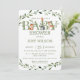 Personalize este convite de chá de fraldas de animais de floresta verde-chic com os detalhes do seu partido hoje! Basta pressionar o botão personalizar para reorganizar e formatar o estilo e a colocação do texto. Excelente para bebê, menina, neutro em sexo ou chá revelador. Com aquarelas verdes e animais de madeira branca. Itens correspondentes disponíveis no repositório! (c) O feliz Cat Studio.