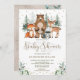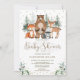 Convite para chás de fraldas de madeira branca com ilustração adorável de aquarela de quatro amigos da floresta