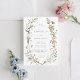 O Simples Convite De Casamento Moderno, Manor Elegante, de Flores Selvagens combina elegância subestimada com um toque de encanto moderno. Apresentando um design refinado, este convite apresenta sotaques delicados, desenhados à mão, de flores silvestres em pastéis macios (cor-de-rosa e azul, bem como verdes), moldando os nomes dos casais e as informações do casamento em uma fonte clássica de casamento com um toque de caligrafia moderna. O layout limpo e a tipografia elegante trazem uma sensação de calma e refinamento.