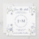 Flor azul de cor d'água minimalista Salve o convite para fotos de data, convite quadrado. * Para obter melhores resultados, use uma foto quadrada neste modelo.